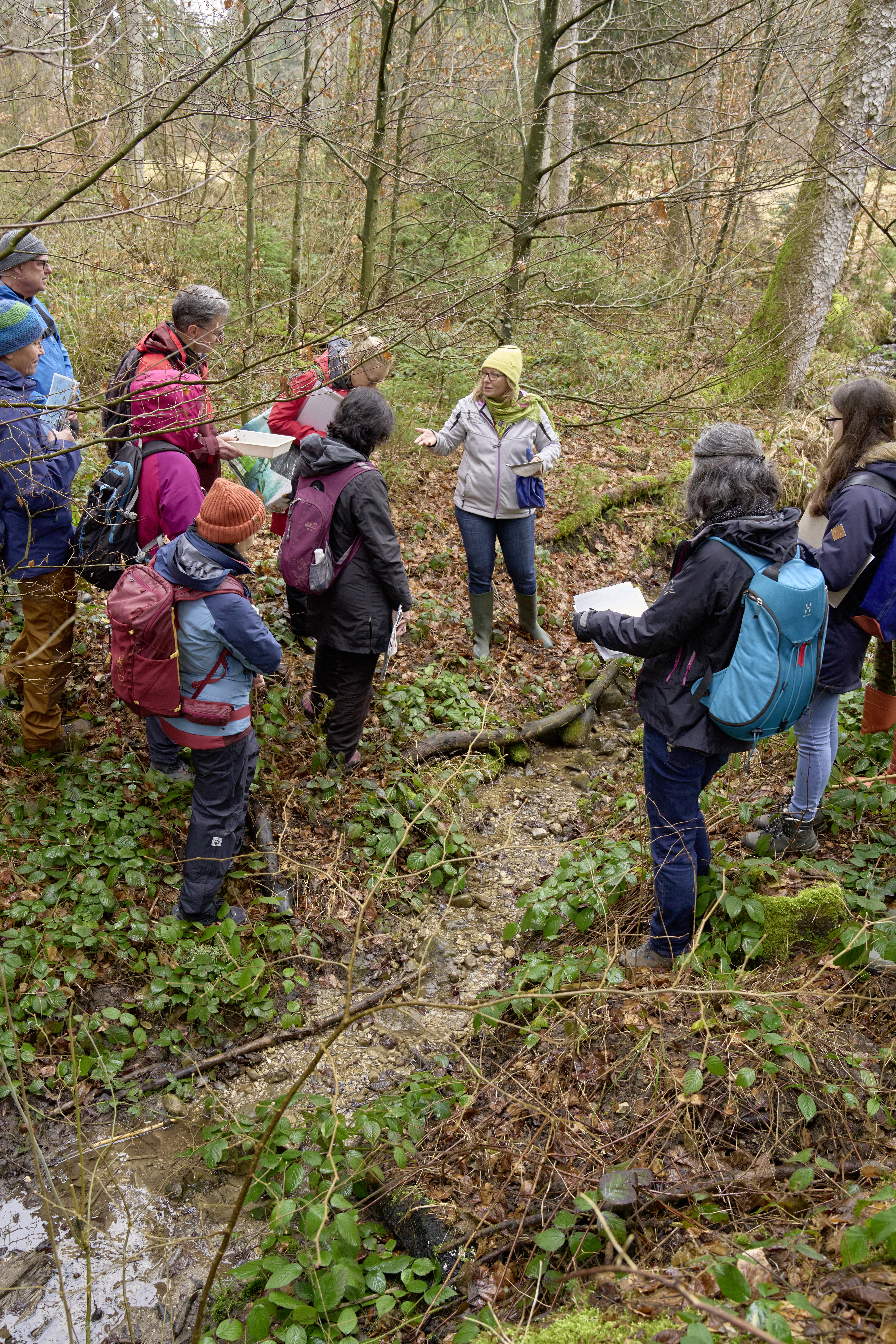 Und da kommen Sie ins Spiel: Als freiwillige:r Quellenforscher:in können Sie sich auf eine echte Spurensuche begeben. Mit Karte und GPS folgen Sie Bächen bergauf, verlassen Wege, tauchen in Wälder ein und suchen Orte wo das Wasser erstmals ans Licht tritt. Feuchte Erde, moosbewachsene Steine, ein kaum sichtbares Glitzern – vielleicht huscht ein Feuersalamander über den Boden oder Larven klammern sich an Steine. Jeder Schritt ist wie eine kleine Entdeckung: Sie lesen die Landschaft wie ein Rätsel, spüren versteckte Hinweise auf und folgen den stillen Spuren. Ist es ein klarer Quellaustritt? Mehrere verborgene Sickerstellen? Jede Quelle birgt Geheimnisse, die gelöst werden wollen. Eine echte Detektivarbeit.