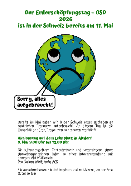 Der Erderschöpfungstag – OSD 2026 ist in der Schweiz bereits am 11. Mai